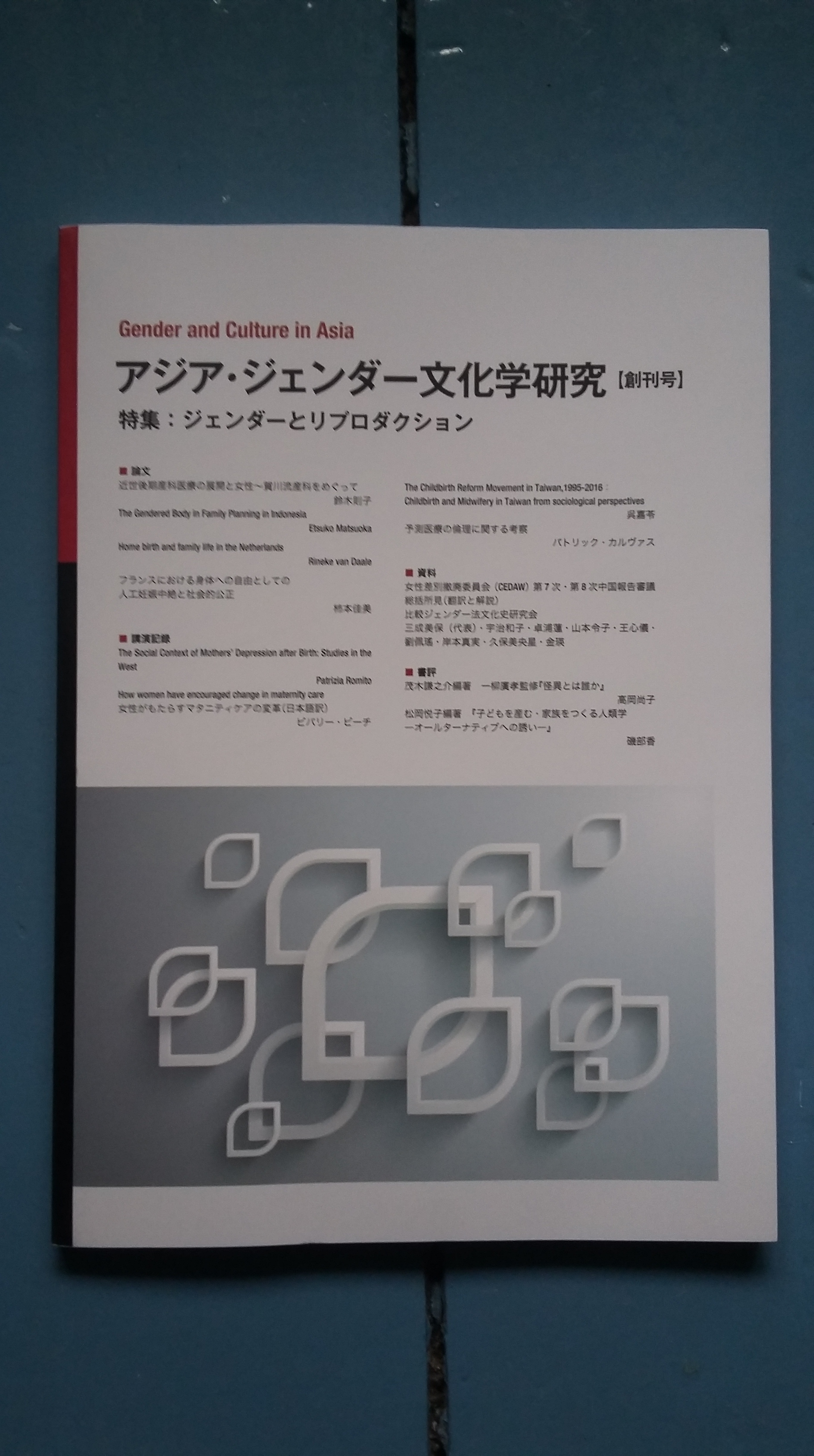 Onlangs verscheen het eerste nummer van het tijdschrift Gender and Culture in Asia. Het is bedoeld om gender studies aan te moedigen en academici met overeenkomstige belangstelling met elkaar in contact te brengen. Sleutelbegrippen zijn gender, Azië, en culturele studies. De hoofdredacteur is Etsuko Matsuoka, voorzitter van The Center for Gender and Women’s Culture in Asia, een afdeling van Nara Women’s University, Japan. Matsuoka is gespecialiseerd in Anthropology and Gender Studies.