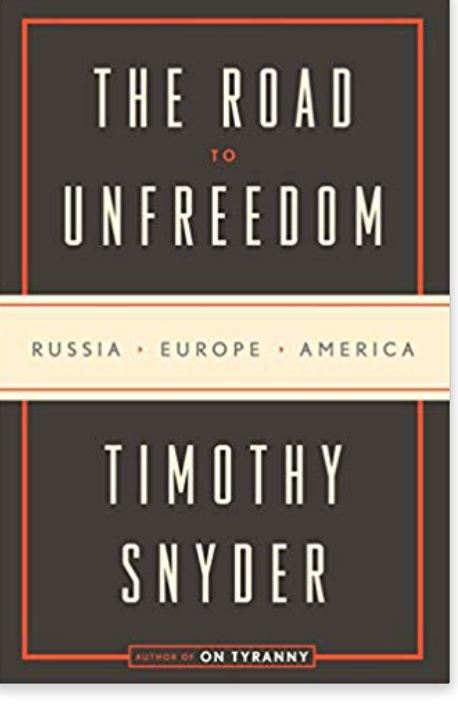 The Road to Unfreedom van Snyder is een minstens zo somber boek. Snyder laat en detail zien hoe Rusland een totalitaire weg is ingeslagen en welbewust en planmatig westerse democratieën bedreigt. De campagnes die vanuit Rusland worden gevoerd hebben leugens en onvrijheid als exportartikel, en ze zijn gericht op het destabiliseren van westerse samenlevingen. Gebruik makend van nieuwe technologie weten de Russen in te spelen op gevoeligheden en onvrede die bij een deel van de westerse bevolking leven. Vooral bij rechtse groeperingen slaan de Russische campagnes aan, maar ook delen van links blijken gevoelig te zijn voor de retoriek van president Poetin en zijn politieke technologen.