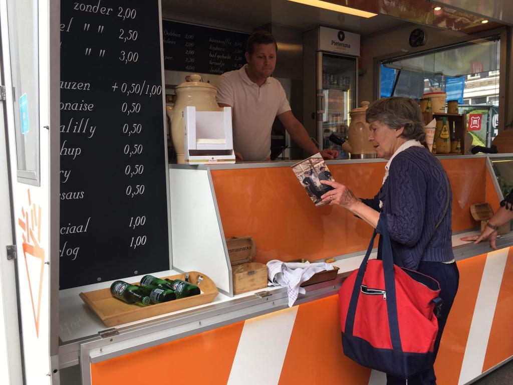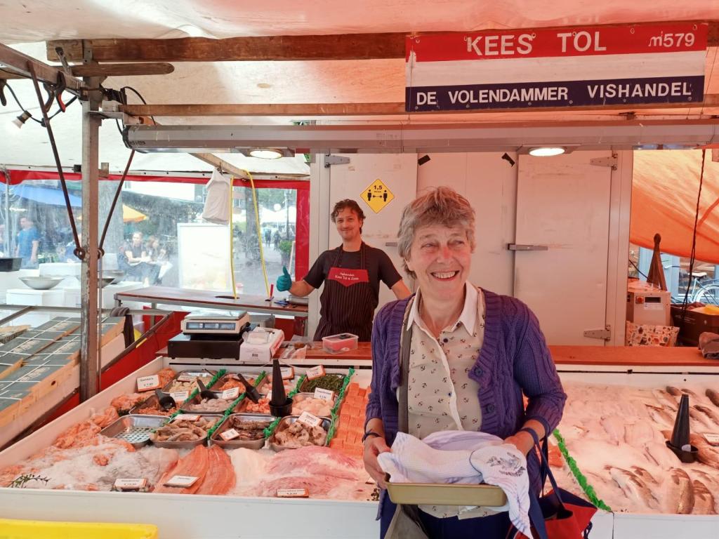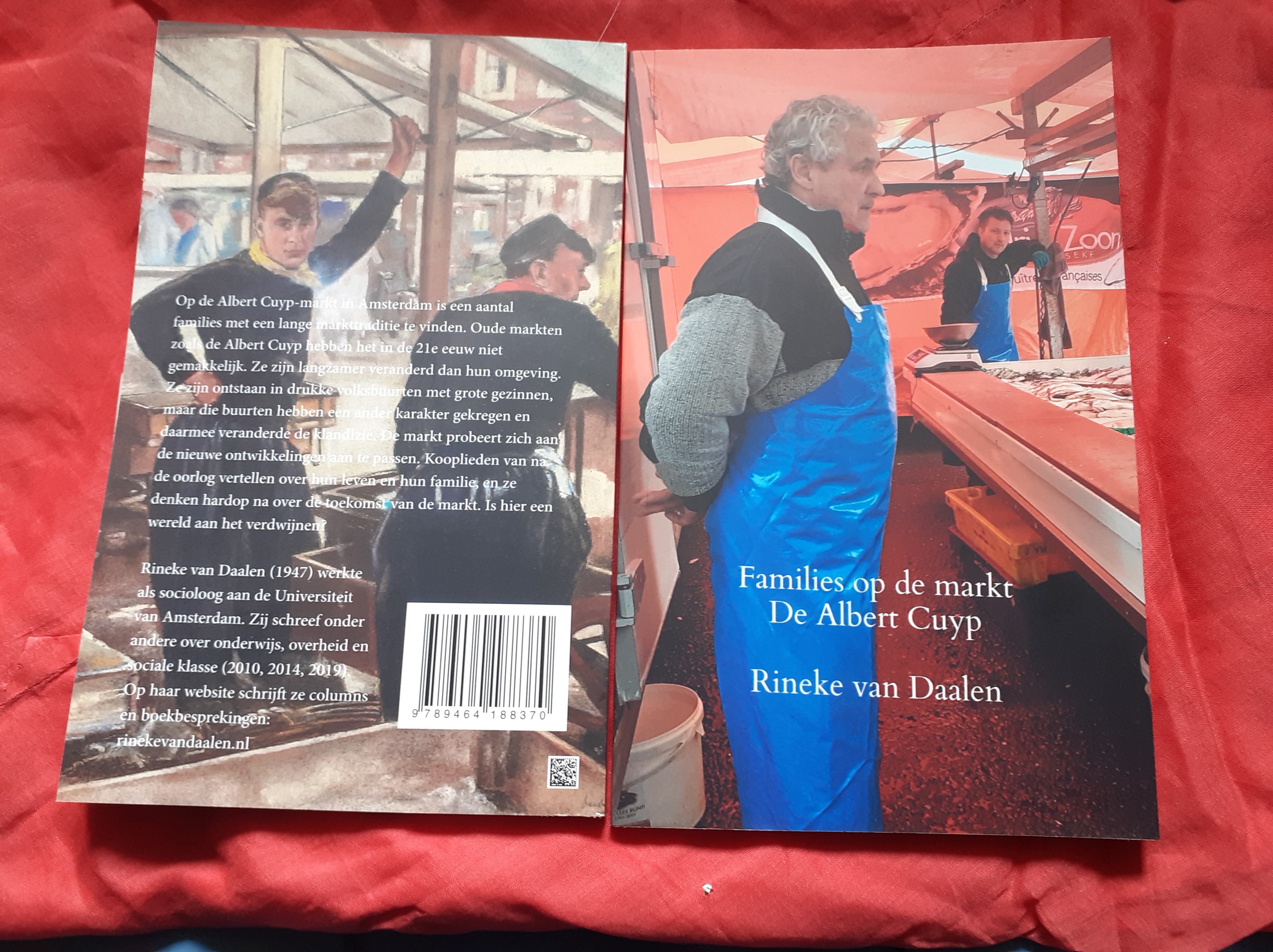 Dat bracht me op het idee om die vertrekkende handelaars te interviewen, en ik was daarbij vooral nieuwsgierig naar de familiebedrijven met verschillende generaties in de stal. Het verslag van deze interviews is terecht gekomen in Families op de markt. De Albert Cuyp. De kooplieden vertellen over het leven van verschillende generaties en ze filosoferen over de toekomst van de markt. Op het omslag staan vier generaties van de familie Tol uit Volendam, oorspronkelijk vissers. Op de voorkant staan de zoon en de vader die nu op de markt zijn te vinden, op de achterkant staan de grootvader en de overgrootvader op een schilderij uit de jaren dertig, een afstudeerwerkstuk van een leerling van de Academie van Beeldende Kunst.