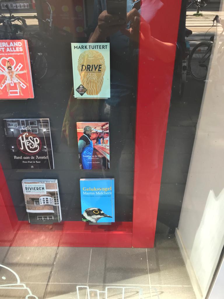 Hieronder ligt het in de Bruna-etalage in de van Woustraat: