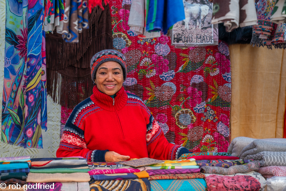 Zeventien jaar staat ze op de markt, en het moet wel heel hard waaien als ze een dagje overslaat. Lisa Sulistiawati heeft een eigen bedrijf. Ze verkoopt sjaals, dekens, poncho’s en kimono’s, van de allerbeste kwaliteit. Haar spullen zijn van natuurlijk materiaal: cashmere, zijde, alpaca, wol, katoen en pashmina. Ze zet de traditie van haar ouders voort. Die stonden in Indonesië met groente en fruit op de markt. Vaak werkt Lisa alleen, soms wordt ze geholpen door haar vriend. Ze koopt haar spullen buiten Europa in en verkoopt ze binnen Europa, bijvoorbeeld op Ibiza.